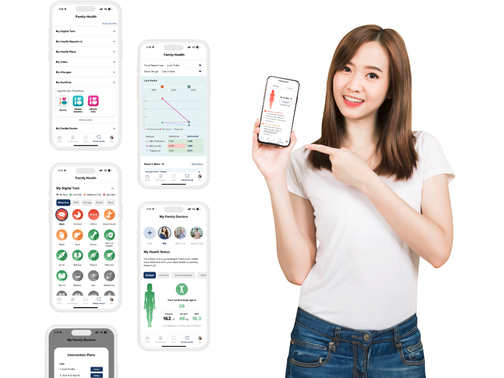The 1doc Digital Twin is a tool that allows you to visualise your health data, including your lab results, medications, and medical history. It can be used to help you understand your health, track your health over time, and identify trends, based on your health reports.